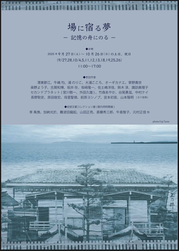 会期中、氏のコレクション作品の展示も致します。また、参加作家達によるトークや、カフェの出店も企画しております。どうぞ、海のほとりの展覧会に足をお運びください。作家達の展示と、玉乃井の空間がお待ちしています。