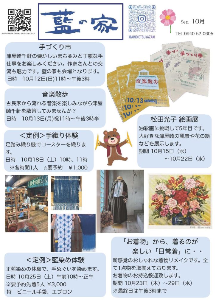 イベント 10月の藍の家スケジュール 2025.09.29 明治34年に建築された、国の有形文化財に登録されている津屋崎千軒民俗館「藍の家」のカレンダーが届きました! 藍の家Facebook Tweet Share Hatena Pocket RSS feedly Pin it 【終了しました】7月21日~11月30日┃世界遺産 海と神秘のカードラリー┃福津市内など 前の記事 10月のふくつ観光協会(ふっくる)スケジュール 次の記事