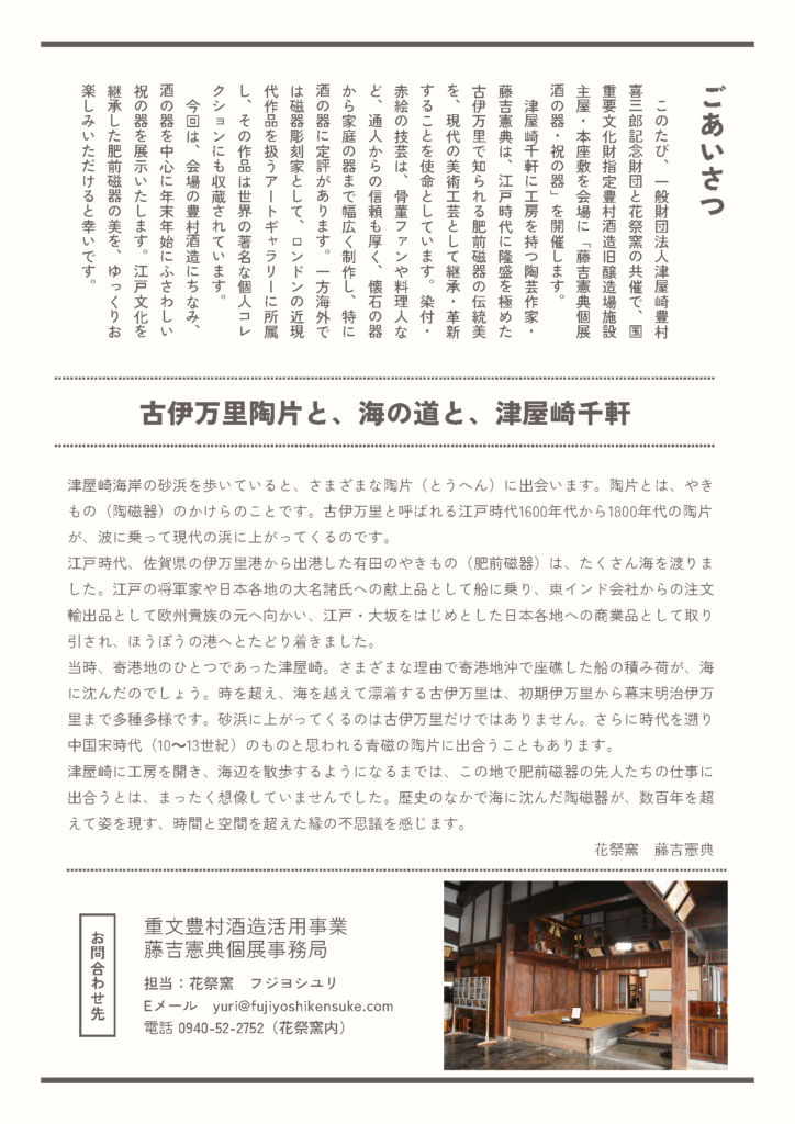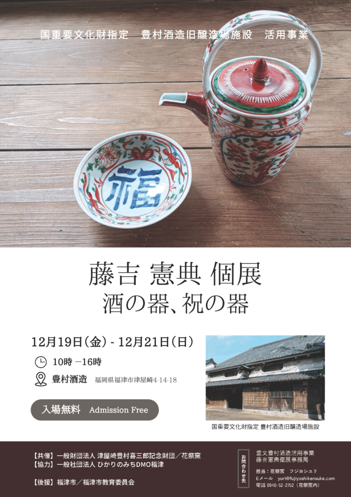 【終了しました】12月19日~21日┃藤吉憲典個展 酒の器、祝の器┃豊村酒造旧醸造施設(津屋崎千軒)