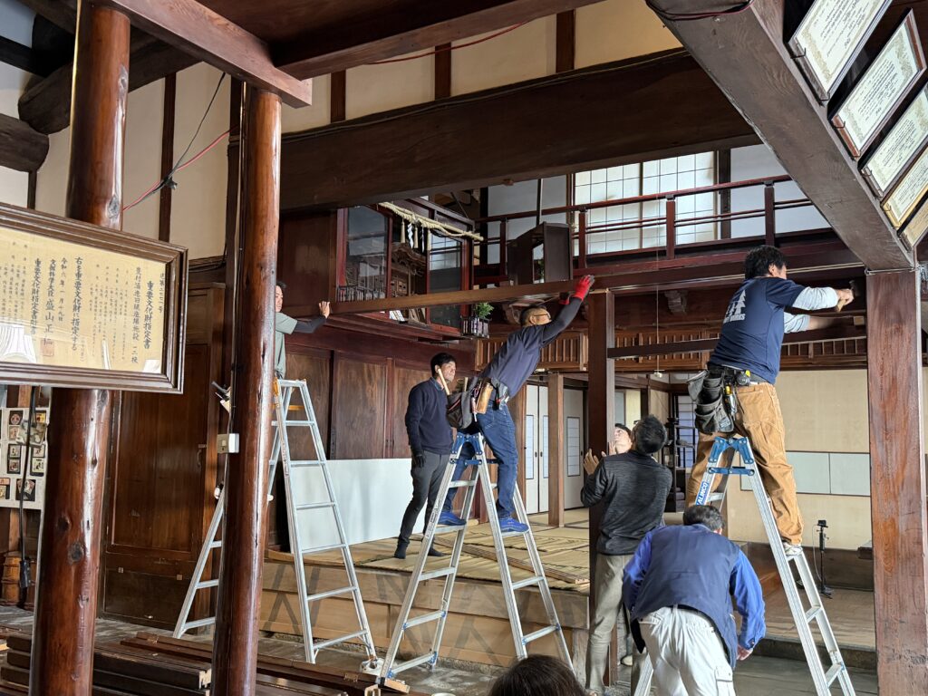 今年は後進育成が本格的に進められ、若手職人も作業に参加。継承に向け、作業手順を細かく記録し、マニュアル化を進めている点も紹介されました。参加者からは「釘を使わずに組み上げる技術がすごい」「建物の構造に興味がある」といった声が上がり、伝統建築への関心の高さがうかがえました。