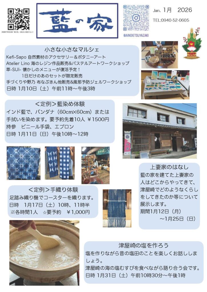 イベント 1月の藍の家スケジュール 2025.12.26 明治34年に建築された、国の有形文化財に登録されている津屋崎千軒民俗館「藍の家」のカレンダーが届きました! 藍の家Facebook Tweet Share Hatena Pocket RSS feedly Pin it 【2026初詣に伴う宮地嶽神社方面の交通規制について】 前の記事 1月のふくつ観光協会(ふっくる)スケジュール 次の記事