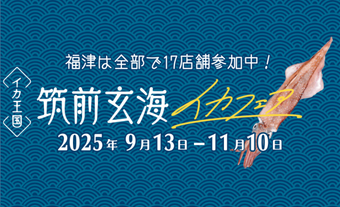 「イカ王国」筑前玄海エリアで開催されるイカフェア。新鮮でおいしいイカを食べるなら福津へGO!2025年9月13日(土)~11月10日(月)開催。
